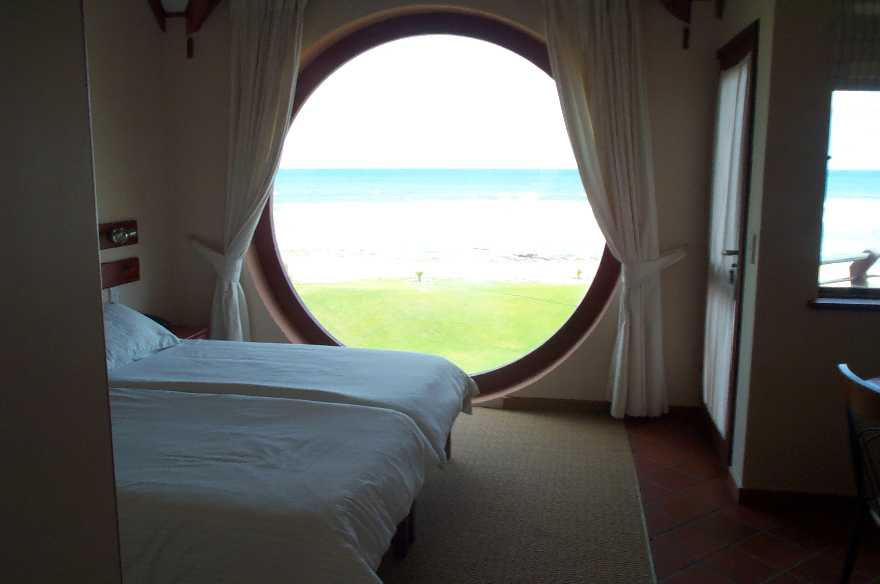 Allí en Swakopmund nos dirigimos al B&B (bed and breakfast: cama y desayuno). Y la sorpresa fue grande, pues la habitación que nos habían reservado era, en dos palabras: im- presionante. Una ventana redonda, de 3 metros de diámetro, de cara al mar. ¿Qué? ¿Impresionante, no? Pongo la dirección para quien quiera más información.