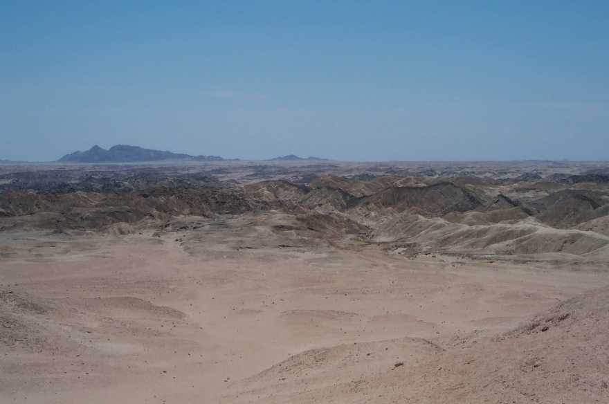 Y para superar la impresión nos fuimos a ver dos de las atracciones de la zona: el "Moon Landscape" y las welwitchias. Antes hay que pasar por la oficina de turismo, y allí tedicen donde tienes que ir para conseguir el permiso para ir hasta allí. Si vas en verano (temporada baja) no hay mucha gente, y puedes arriesarte. Cuando la temporada es alta, es mejor tener el papelito... El Moon Landscape es un paisaje completamente distinto del que estás acostumbrado en aquellos parajes: es como su nombre indica, un paisaje lunar. No hay nada más que eso, paisaje, pero merece la pena hacer unos kilómetros para verlo. Y el siguiente punto del recorrido es la llanura de las welwitchias. Estas son unas plantas curiosas cuando menos. Lo primero por vivir en un desierto, y segundo por su longevidad y tamaño, hay ejemplares que superan fácilmente los 1000 años. Aunque estas plantas se pueden encontrar por toda Namibia, es aquí donde son más grandes. De hecho hay ejemplares cuyas hojas, alargadas, llegan a medir cerca de 20 metros, y eso en una planta del desierto. Según leimos la planta recoge la humedad de las nieblas que se producen en la zona, y de ese agua extrae los elementos necesarios para sobrevivir. Hay dos tipos diferentes de plantas según sean macho o hembra. Bellas no son, pero como mínimo son interesantes de ver. Hay muchas por lo que no hace falta que hagáis muchos kilómetros para verlas.