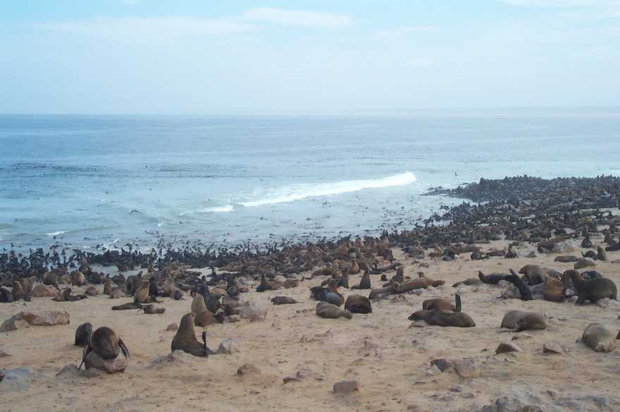 Bien pues sin más historia llegamos a Cape Cross. En esta época la reserva la abren a las 10:00 horas en punto. Pero en punto, puedes poner el reloj en hora: sin exagerar. Después de inscribirnos y pagar la entrada (como en todos los parques y sitios de interés) nos fuimos hacia donde señalaban los indicadores: seals (focas).